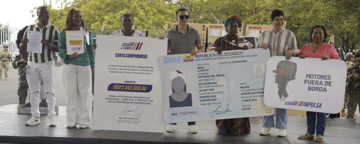 El Gobierno Nacional ejecutó una asignación de recursos por dos millones de dólares dirigida a la provincia de Esmeraldas. Los fondos están destinados al financiamiento de veintitrés iniciativas comunitarias y a la dotación de 111 motores fuera de borda para el sector pesquero artesanal. Esta acción se enmarca dentro de una visita presidencial al territorio, donde se formalizó la adhesión a las metas del Segundo Decenio Internacional para los Afrodescendientes de las Naciones Unidas.