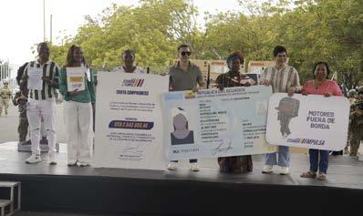 Dotación para la pesca artesanal De forma paralela, el Ministerio de Agricultura, Ganadería y Pesca procedió con la entrega de 111 motores fuera de borda. Este equipamiento está dirigido a pescadores artesanales de la provincia, con el objetivo declarado de incrementar su capacidad productiva. La actividad pesquera constituye uno de los ejes económicos fundamen-