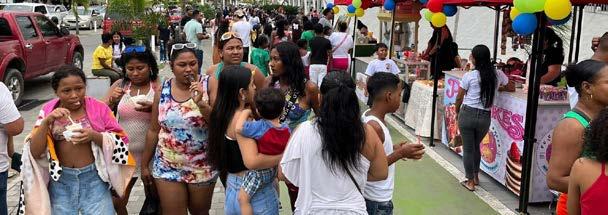 personas en busca de papas con chorizo, hamburguesas y otros platillos favoritos de los niños. Además, los emprendedores locales aprovecharon la alta afluencia de visitantes para ofrecer sus productos, desde artesanías hasta juguetes, contribuyendo así a dinamizar la economía de la zona. El ambiente festivo se complementó con música, globos de colores