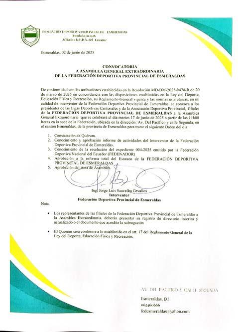 Se les solicita confirmar su asistencia al siguiente correo electrónico: francisco@kruger.law; peter@kruger.law; y/o al siguiente número telefónico: 0995698741 hasta el día 06 de junio de 2025. Para los accionistas que hayan optado por decidir por enviar en representación a terceros, se receptarán las respectivas cartas poder en las mismas direcciones hasta la fecha antes indicada.