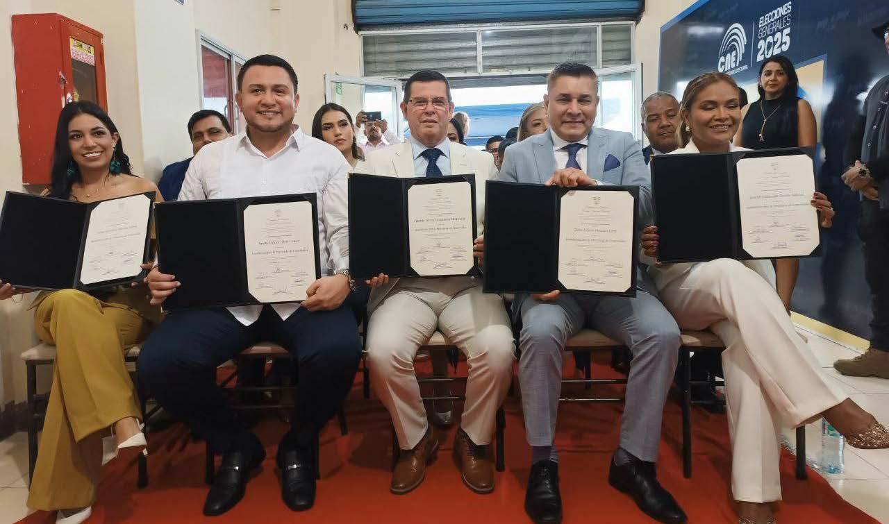 Jorge Benítez resaltó que solo 78 actas fueron revisadas, mientras la Mesa de Seguridad Electoral aseguró comicios pacíficos. El Consejo Nacional Electoral (CNE) realizó la entrega formal de credenciales a los cinco asambleístas principales y sus respectivos suplentes electos por la provincia de Esmeraldas. El acto, celebrado en abril, marcó el inicio de sus funciones como representantes legítimos de