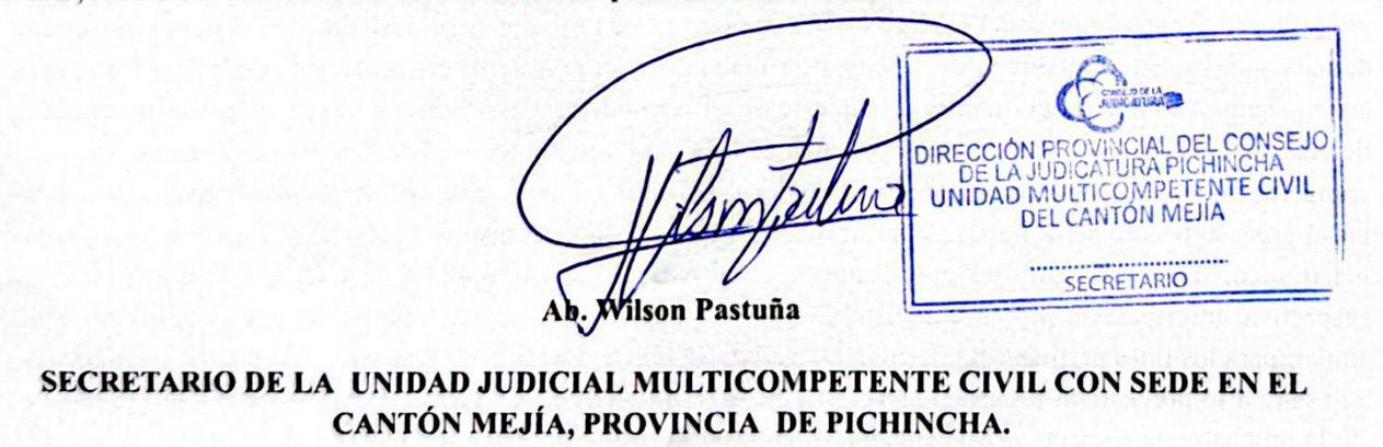 UNIDAD JUDICIAL MULTICOMPETENTE CIVIL CON SEDE EN EL CANTÓN MEJÍA, PROVINCIA DE PICHINCHA. R del E