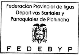 La Federación Provincial de Ligas Deportivas Barriales y Parroquiales de Pichincha (FEDEBYP), CONVOCA a la Asamblea de Elección de Tesorero/a y Quinto Vocal Suplente de la Federación Provincial de Ligas Deportivas Barriales y Parroquiales de Pichincha; de acuerdo a lo que determina la LEY DEL DEPORTE, EDUCACION FISICA Y RECREACION, Art. 18; REGLAMENTO SUSTITUTIVO AL REGLAMENTO GENERAL DE LA LEY DEL DEPORTE, EDUCACIÓN FÍSICA Y RECREACIÓN, en sus Art.14, Núm. 3; Arts. 15, 16, 17, 18; en armonía con el ESTATUTO DE LA FEDERACIÓN PROVINCIAL DE LIGAS DEPORTIVAS BARRIALES Y PARROQUIALES DE PICHINCHA - FEDEBYP, Arts.9, 15, 17, 18 , 19 (literal b) y 20 (literales a y b).