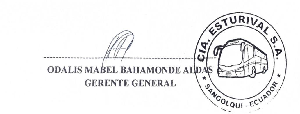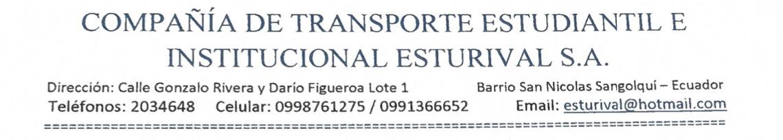 CONVOCATORIA A JUNTA GENERAL ORDINARIA DE ACCIONISTAS DE LA COMPAÑÍA DE TRANSPORTE ESTUDIANTIL E INSTITUCIONAL “ESTURIVAL S.A. con domicilio en la provincia de Pichincha, Cantón Rumiñahui, Parroquia Sangolquí, calle Gonzalo Rivera y Darío Figueroa Lote 1.