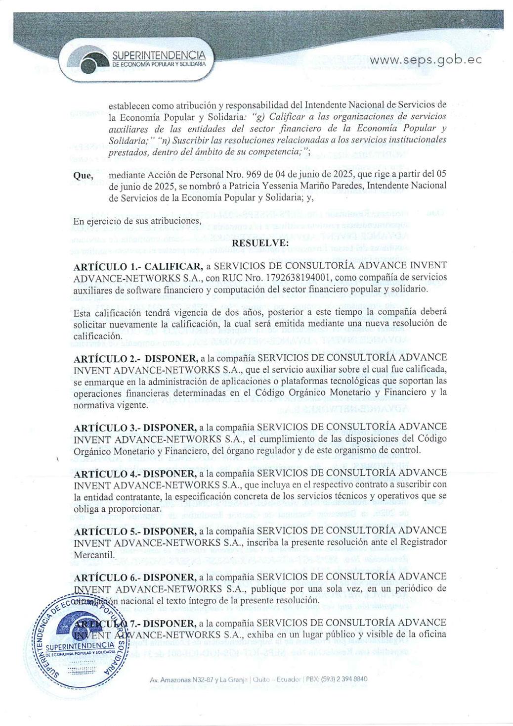 La documentación para tratar en la Junta General de Accionistas se encuentra a disposición de los Accionistas, en los términos previstos en el Art. 292 de la Ley de Compañías y pueden ser solicitadas en las oficinas administrativas de la compañía parroquia de Cumbayá de la ciudad de Quito, Distrito Metropolitano.