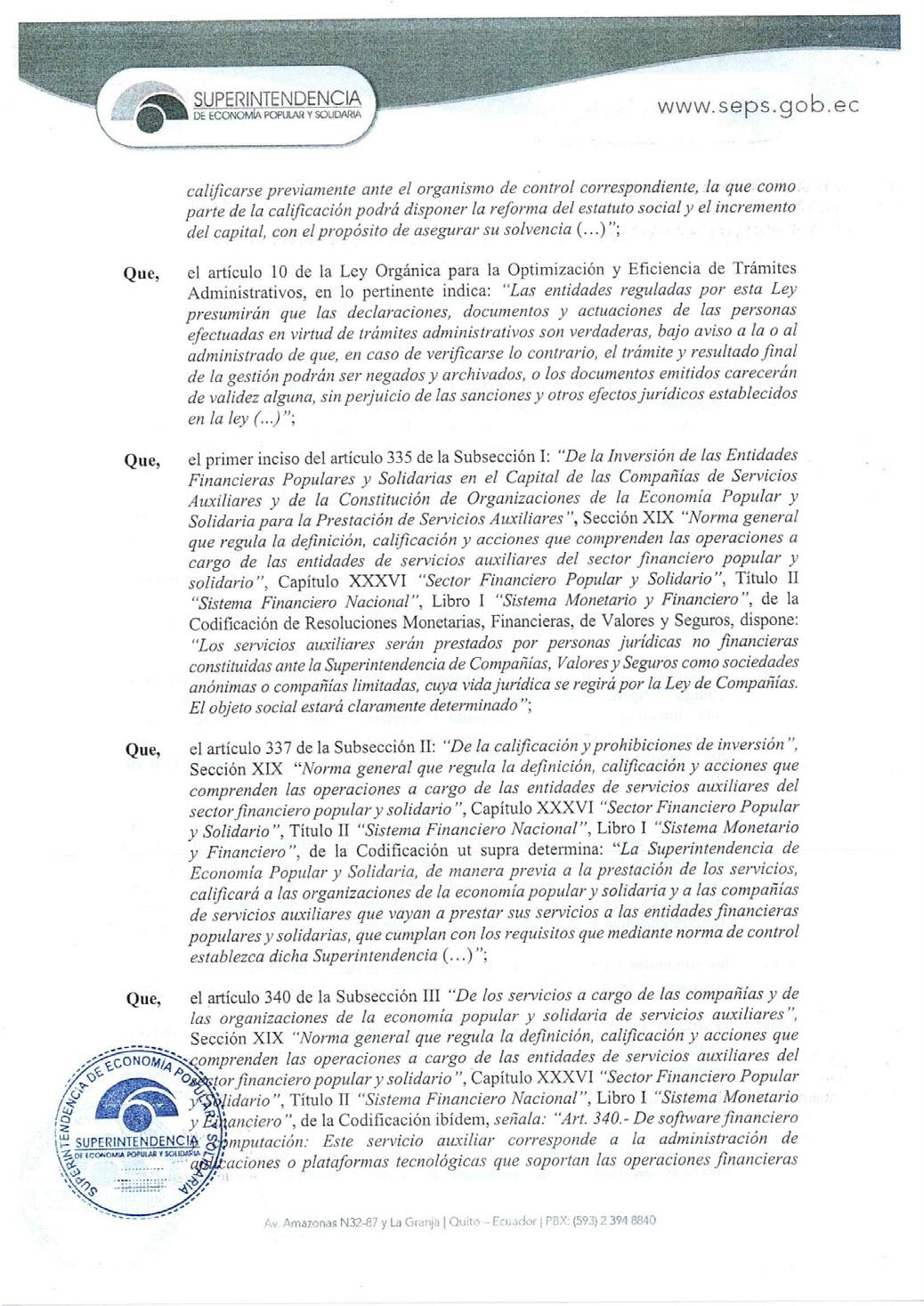 3. Determinación de la dirección física donde funcionará la administración y custodiará documentación societaria y contable, en la ciudad de Francisco de Orellana, autorizando: