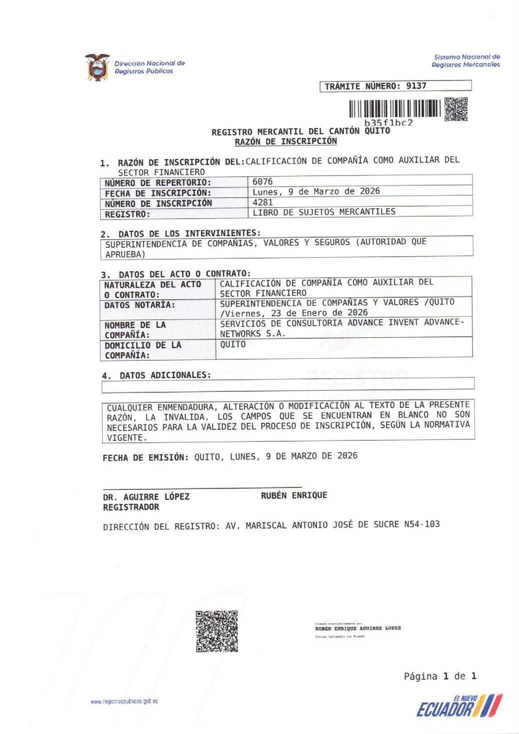 La Junta se realizará el 20 de marzo del 2026, a las 10h00 en el domicilio de la compañía, ubicado en la provincia de Orellana, Ciudad Francisco de Orellana, en la Calle Ambato S/N, intersección Calle Río Negro, Frente a la Iglesia San Antonio. Para conocer y resolver el siguiente orden del día: