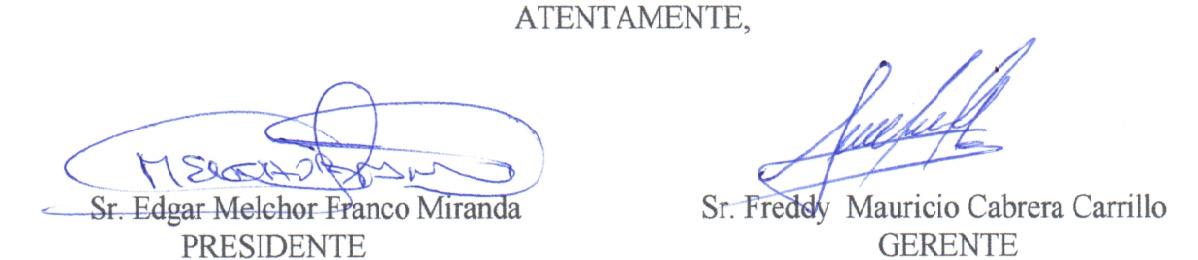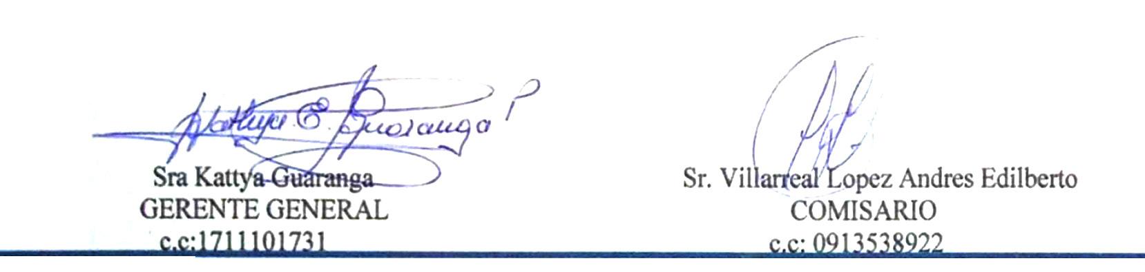 Los estados financieros y los informes citados anteriormente, se encuentran a disposición de los señores socios en las oficinas de la compañía. Se convoca expresamente a la Señorita Jácome Paola Auditora Externa.