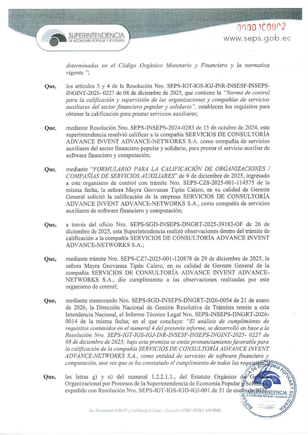 2. Conocimiento del estado de la intervención de la compañía, de las observaciones vigentes comunicadas por la SCVS.