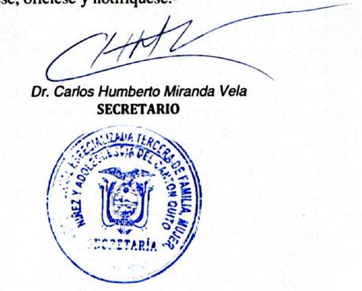 UNIDAD JUDICIAL MULTICOMPETENTE CIVIL CON SEDE EN EL CANTÓN MEJÍA, PROVINCIA DE PICHINCHA.- Mejia, jueves 8 de agosto del 2019, las 16h01, VISTOS: Avoco conocimiento de la presente causa en calidad de Juez Titular de esta Judicatura.-Una vez que se ha dado cumplimiento a lo requerido en el auto inmediato anterior.- FUNDAMENTOS DE HECHO.- ÚNICO: Con respecto a la demanda de prescripción adquisitiva de dominio presentada por CEBALLOS JOSE EZEQUIAS y ANAGUANO MARTHA DEL ROSARIO, en contra de ESTEBAN JOSÉ EDUARDO MIÑO CAJIAO, ROQUE ANTONIO MIÑO CAJIAO, MARIA AUGUSTA MIÑO CAJIAO, SUSANA DE LAS MERCEDES MIÑO CAJIAO, RODRIGO ANDRÉS FRANCISCO MIÑO CAJIAO, y ÁLVARO SANTIAGO MIÑO CAJIAO, se considera: FUNDAMENTOS DE DERECHO.- PRIMERO: Examinada la demanda, se estima en base a los documentos , datos aportados y fundamentos de hecho y de derecho, que es clara, precisa y reúne los requisitos establecidos en el Art. 142 del Código Orgánico General de Procesos .- PARTE DISPOSITIVA.- En base a lo anterior este Judicatura resuelve: PRIMERO: Admitir a trámite la presente demanda de prescripción adquisitiva de dominio, que deberá sustanciarse por las reglas del procedimiento ordinario.- Como ordena el artículo 291 inciso segundo del Código Orgánico General de Procesos dese traslado de la demanda, a la parte demandada, haciéndole entrega de la copia de demanda y copias certificadas de los documentos y anexos acompañados, emplazándola para que conteste en el término de treinta días y haga uso de su derecho a la defensa en los términos establecidos en el Art. 151 del COGEP.- Apercíbase a la parte demandada, que si no comparece dentro del término señalado, se le declarará en rebeldía procesal.- Advirtiéndose, que la actuación en el proceso deberá ser a través de un profesional del derecho, asimismo señalar casilla judicial y/o correo electrónico.- SEGUNDO: DE LA PRUEBA .- En cuanto a la prueba anunciada, se estará a lo previsto en los artículos 160, 161, 190, y 294.7, literal d) del COGEP, sobre la admisibilidad y práctica de la prueba en la respectiva Audiencia.- Al tenor de lo dispuesto en el artículo 169 tercer inciso Ibídem, se ordena a las partes que pongan a disposición de la respectiva contraparte las pruebas que estén o deban estar en su poder.- En cuanto a la prueba testimonial, solicitada se estará, a lo dispuesto en el Art. 191 del COGEP..- TERCERO: Previa a la citación de la presente demanda y en cumplimiento a lo dispuesto en el Art. 146 inciso quinto, se dispone la inscripción de la presente demanda en el Registro de la Propiedad del cantón Mejía, en el bien inmueble cuyas características constan en el certificado adjunto a la demanda.- CUARTO: Atento al juramento rendido por los actores señores CEBALLOS JOSE EZEQUIAS y ANAGUANO MARTHA DEL ROSARIO, y conforme lo establece el Art. 56 numeral 1 del Código Orgánico General de Procesos, cítese a los herederos desconocidos de MARIA LUISA CAJIAO MIÑO mediante publicaciones en uno de los diarios de mayor circulación de la ciudad de Quito,(capital de la provincia de Pichincha) en virtud de que no se cuenta con este medio de comunicación en esta localidad, advirtiéndoles de la obligación que tienen de señalar casilla judicial y/o correo electrónico para sus posteriores notificaciones. QUINTO.- Cítese a los demandados señores ESTEBAN JOSÉ EDUARDO MIÑO CAJIAO, ROQUE ANTONIO MIÑO CAJIAO, MARIA AUGUSTA MIÑO CAJIAO, SUSANA DE LAS MERCEDES MIÑO CAJIAO, RODRIGO ANDRÉS FRANCISCO MIÑO CAJIAO, y ÁLVARO SANTIAGO MIÑO CAJIAO, en el domicilio señalado en el libelo de demanda, así como también cítese al señor PROCURADOR GENERAL DEL ESTADO, para el efecto, DEPREQUESE a uno de los señores Jueces de la Unidad Judicial de lo Civil, de la parroquia de Iñaquito, del Distrito Metropolitano de Quito, Provincia de Pichincha, en casos análogos, a quienes se les hará conocer el contenido de la demanda, este auto y copias certificadas adjuntas, ofreciendo reciprocidad en casos análogos.- Cítese al, GOBIERNO AUTÓNOMO DESCENTRALIZADO MUNICIPAL DEL CANTÓN MEJÍA en los personeros del Alcalde y Procurador Síndico, en el domicilio señalado en el libelo de demanda, a través de la oficina de citaciones de esta Unidad Judicial.- CUARTO: NOTIFICACIONES Y AUTORIZACIÓN.-Tómese nota de la casilla judicial y correo electrónico señalados por los accionantes así como la autorización conferida a sus Abogados Patrocinadores.Actué el Ab. Wilson Pastuña, en calidad de Secretario Encargado de esta Judicatura, con acción de personal Nro. 4918-DP17-2019-MP.- Notifíquese, cúmplase, cítese y publíquese.-f) Dr. Bustos Avila Rolando Alcibar.-Juez.