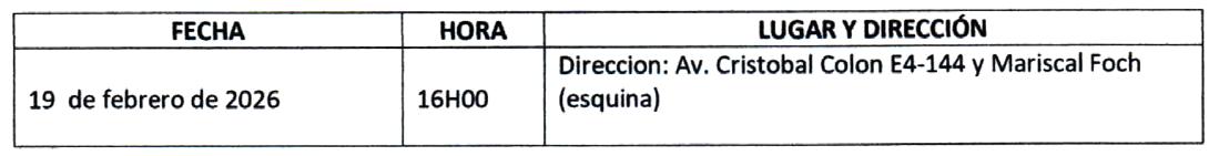 General Ordinaria de Accionistas que se llevará a cabo el día Martes 24 de Febrero del 2026 a las 18h00 en la Sede de la Unión de Taxis Ejecutivos