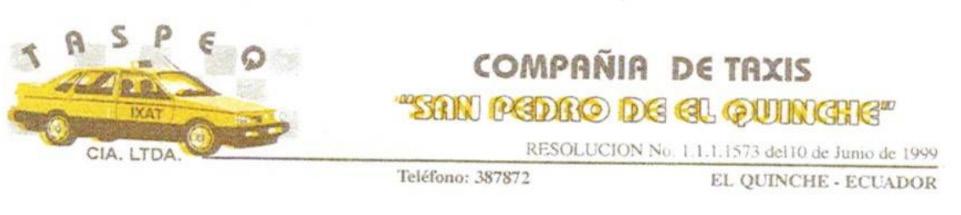 Nota. - Se convoca especial y expresamente al señor Comisario Richard Naspud. La junta se dará inicio en el día y hora señalada, con el 50% más uno del paquete accionario, de no existir el quórum reglamentario se esperará 30 minutos. Transcurrido ese tiempo se dará inicio con el paquete accionario presente, las resoluciones tomadas tendrán total validez y deberá ser aceptada por todos los accionistas