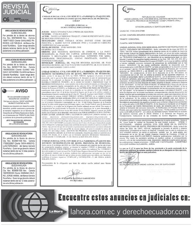 Redacción: editorgeneral@lahora.com.ec Publicidad: publicidad@lahora.com.ec Año: XLI No. 14.318