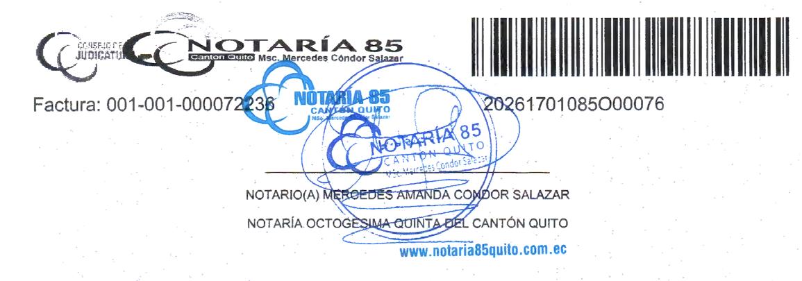 NOTARÍA OCTOGESIMA QUINTA DEL CANTÓN QUITO AVISO