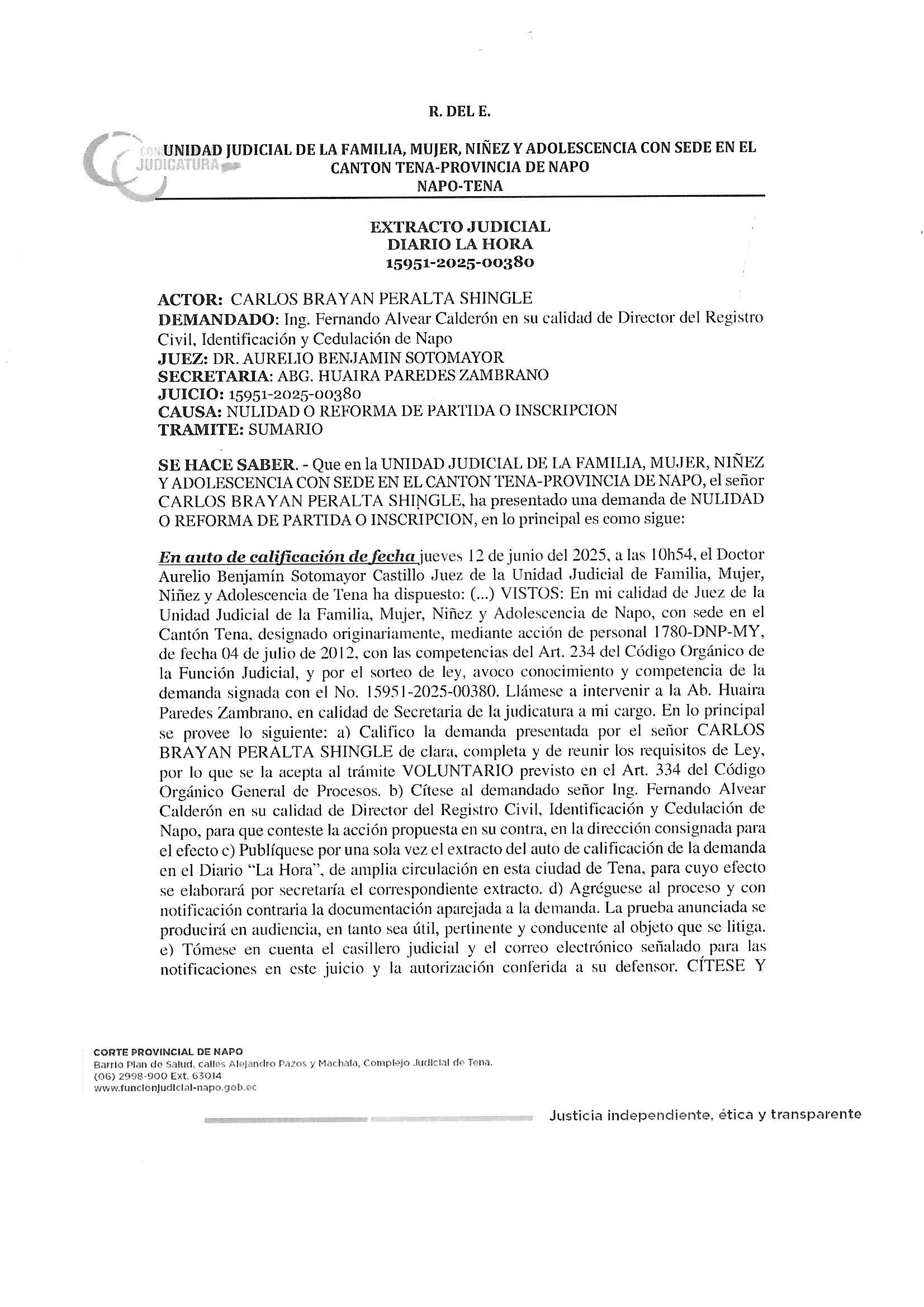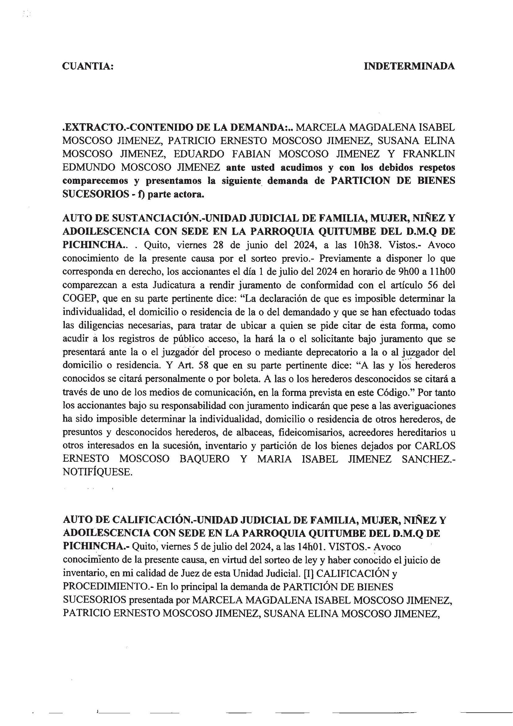 Se convoca de manera especial y particular al Sr. Wlillian Patricio Albuja Paredes, Comisario de la compañía, domiciliado en la ciudad de Quito, barrio La Paulina calle Rodrigo Araujo Oe 10-125 y Manuela Cañizares.