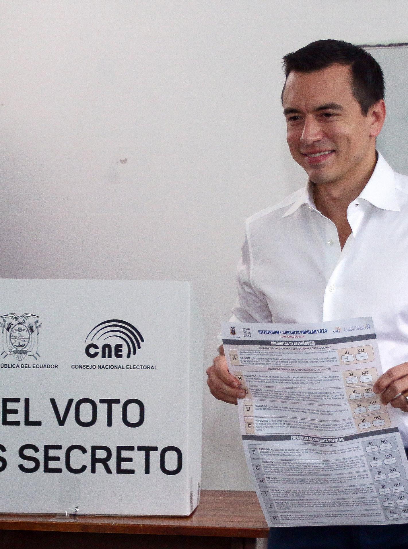 DEMOCRACIA.EL sufragio del presidente Daniel Noboa en la consulta popular del 21 de abril de 2024. (Foto: Presidencia de Ecuador).