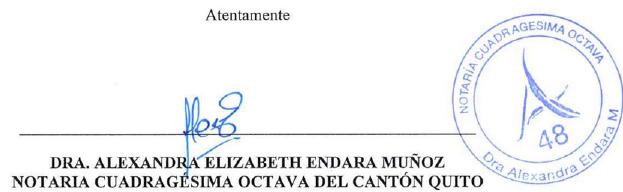 NOTARIA CUADRAGÉSIMA OCTAVA DEL CANTÓN QUITO AVISO AL PUBLICO EN GENERAL