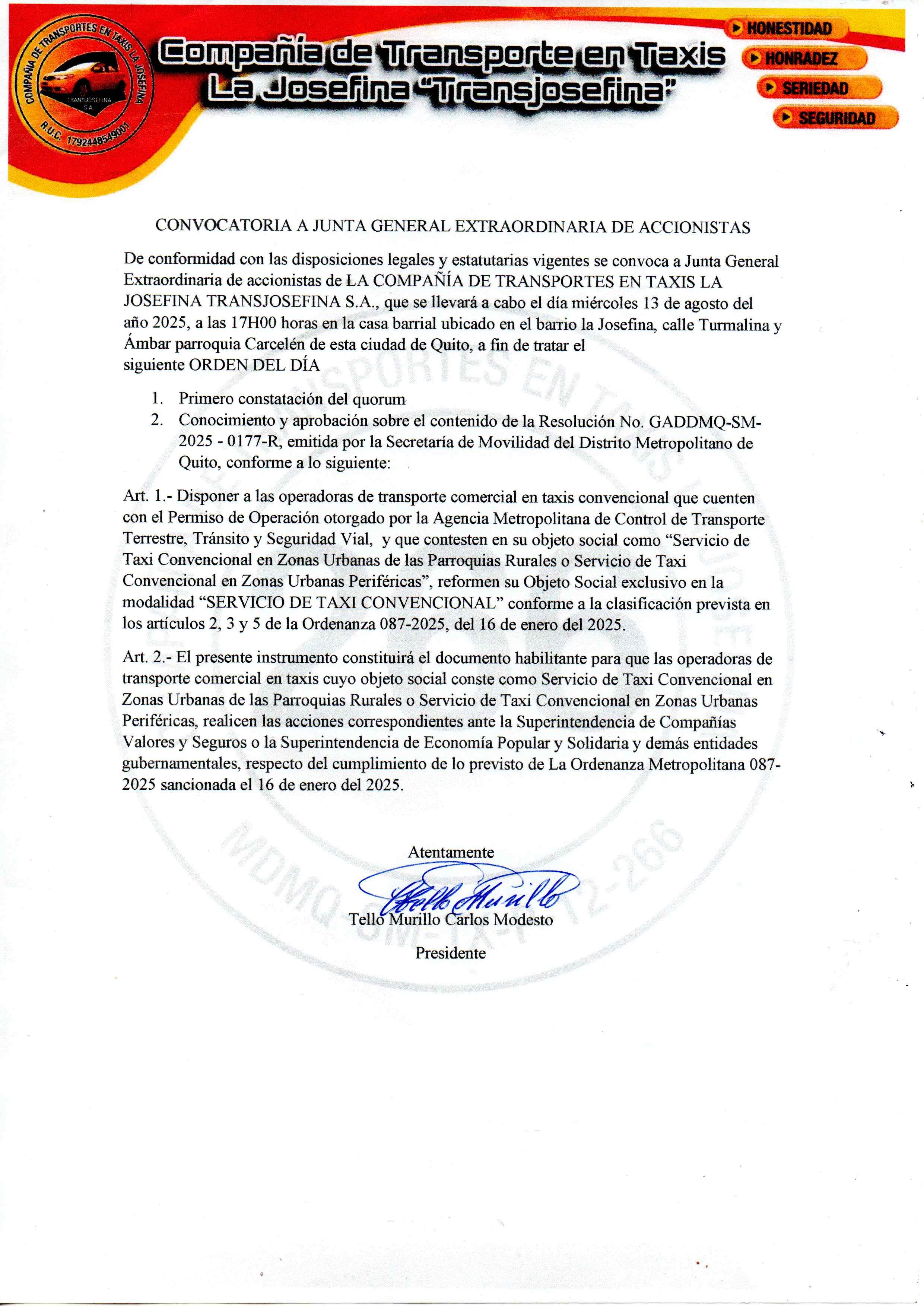 Tema: CONVOCATORIA A LA JUNTA GENERAL EXTRAORDINARIA DE ACCIONISTAS