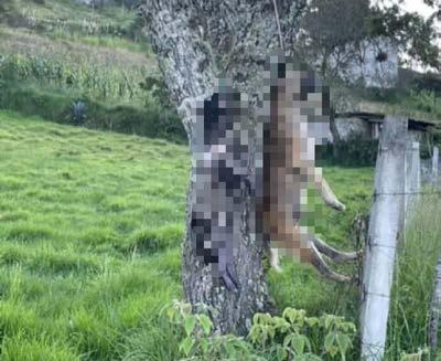 Una escena de horror sacudió al cantón Saraguro, donde dos perros fueron encontrados colgados de un árbol,