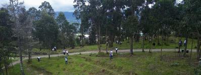 Godoy Ortega. Un total de 300 especies nativas se plantaron en la zona con el personal de la entidad financiera que aportaron con logística y trabajo al sembrar con sus propias manos los arbustos en los