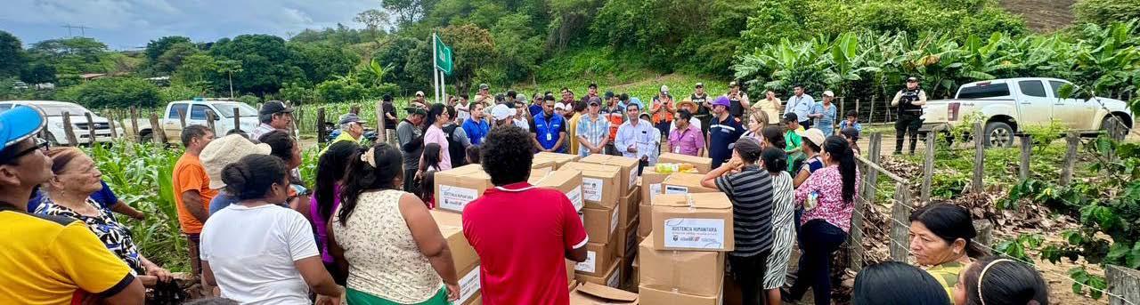 por la gobernadora de Loja, Alexandra Jara Minga, en coordinación con la Secretaría Nacional de Gestión de Riesgos (SNGR), el GAD cantonal y gobiernos parroquiales, se entregaron más de 320 kits de asistencia humanitaria en las parroquias Bolaspamba, Cazaderos y Mangahurco, incluidos kits de alimentos para 15 días.