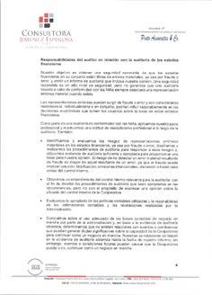 Responsabilidades del auditor en relación con la auditoría de los estados financieros Nuestro objetivo es obtener una seguridad razonable de que los estados financieros en su conjunto están libres de errores materiales, ya sea por fraude o error, y emitir un informe de auditoría que incluya nuestra opinión. Una seguridad razonable es un alto nivel de seguridad, pero no garantiza que una auditoría llevada a cabo de conformidad con las NIAs siempre detectará una representación errónea material cuando exista.