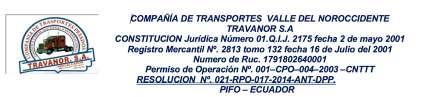 De conformidad con lo establecido en los estatutos sociales de la compañía, se convoca a todos los accionistas a la Asamblea Extraordinaria, que se llevará a cabo el día sábado, 6 de diciembre del 2025 a las 11:00 am en las instalaciones de la oficina de TRAVANOR S.A., ubicada en Barrio Chaupimolino, frente a la empresa Sigmaplast