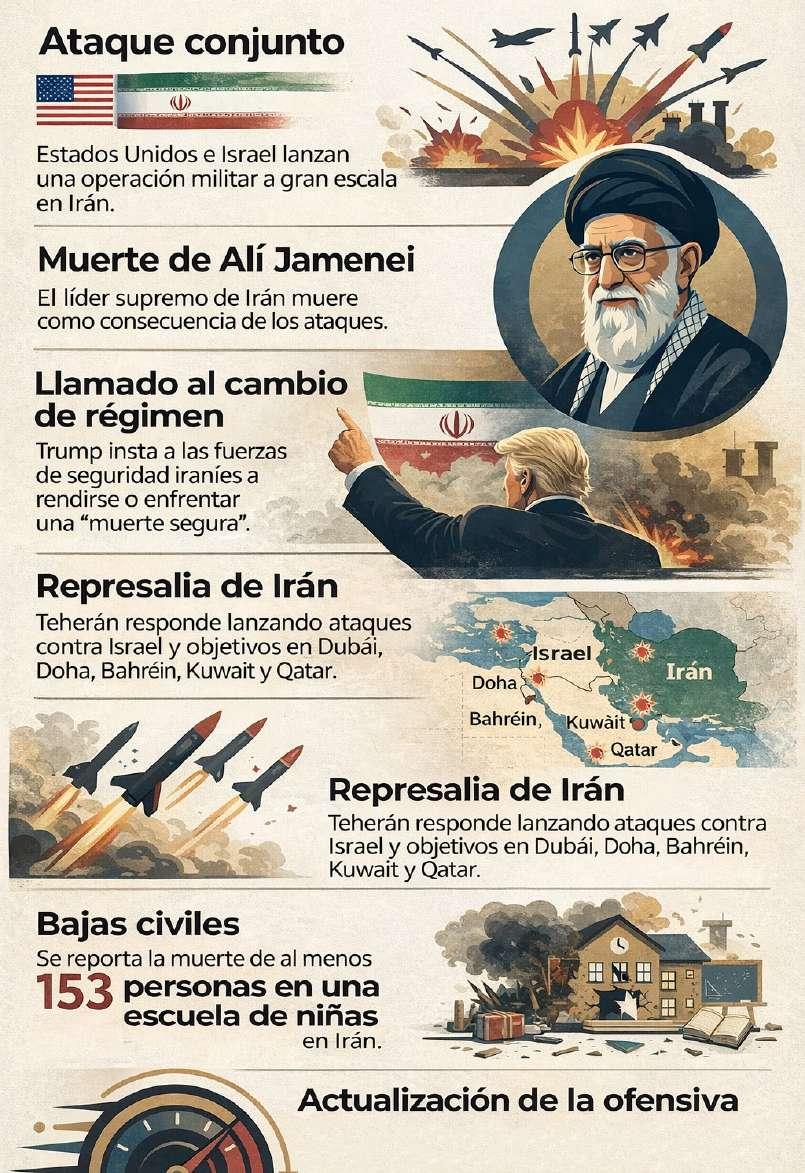 El ayatolá Alí Jamenei, líder supremo en Irán desde 1989, murió tras un ataque de Estados Unidos e Israel, el sábado 28 de febrero. Aunque en la guerra de 12 días en junio de 2025 Israel destruyó gran parte de su arsenal militar, Irán respondió bombardeando Baréin, Kuwait, Omán, Qatar, Arabia Saudita y Emiratos Árabes Unidos. La incertidumbre que genera este conflicto tiene varias aristas. La primera sería un alza del precio del petróleo. La revista británica The Economist estima que el WTI podría superar los $100 por barril, lo que llevaría el crudo ecuatoriano a entre $85 y $90. Un shock petrolero podría aliviar temporalmente las finanzas públicas pero, si el conflicto escala, la inflación podría acelerarse.