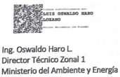 Cúmplase y Notifíquese. f) Ing. Oswaldo Haro L - Director Técnico Zonal 1, Ministerio del Ambiente y Energía. CERTIFICO. –