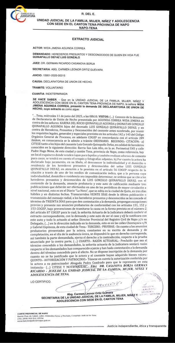 Cumandá Fanny Campi Cevallos, Mauricio Daniel Jácome García, Jaime Javier Sotomayor Crespo, Rosa Higinia Acosta Franco.