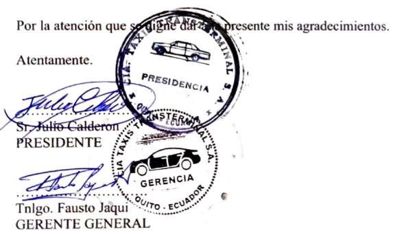 Dando cumplimiento a los estatutos y ley de compañías se convoca con carácter obligatorio a todos los accionistas de la Cía. de TAXIS TRANSTERMINAL S.A a la Junta General Extraordinaria el día Viernes 13 de febrero del 2026 a las 10:00am en la oficina de la compañía Av. Simón Bolívar calle Guasuntos #178.