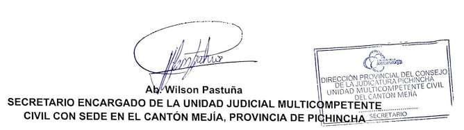 UNIDAD JUDICIAL MULTICOMPETENTE CIVIL CON SEDE EN EL CANTÓN MEJÍA , PROVINCIA DE PICHINCHA