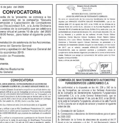 A la Junta General Extraordinaria que se realizará el 20 de febrero de 2026 a las 11h00, en la dirección de la empresa, ubicada en esta ciudad de Quito en las calles Upano e2-328 y Guabo, con opción de comparecencia por medio telemático; en la cual se avocará conocimiento y se resolverá el siguiente orden del día:
