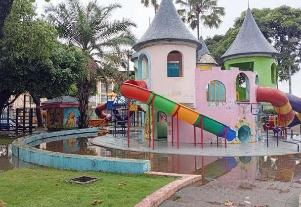 BABAHOYO. Las fuertes lluvias registradas en los últimos días en la ciudad de Babahoyo han provocado la acumulación de agua en varios sectores, siendo uno de los más afectados el parque infantil de la ciudad.