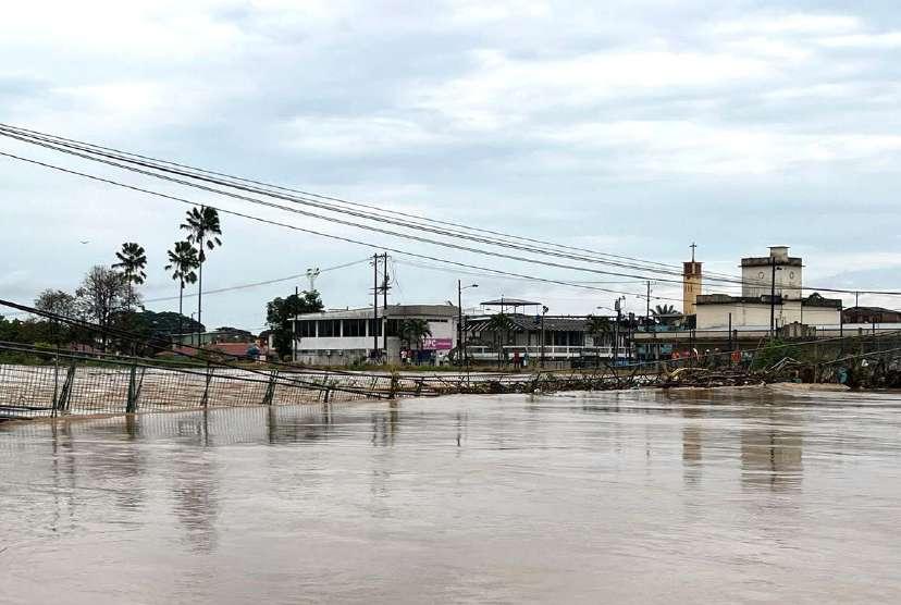Uno de los puntos más afectados fue el puente peatonal que conecta la parroquia Ricaurte con el centro del cantón, el cual resultó inclinado tras el impacto de la maleza y otros materiales que eran arrastrados por la corriente.