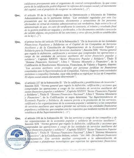 La documentación para tratar en la Junta General de Accionistas se encuentra a disposición de los Accionistas, en los términos previstos en el Art. 292 de la Ley de Compañías y pueden ser solicitadas en las oficinas administrativas de la compañía parroquia de Cumbayá de la ciudad de Quito, Distrito Metropolitano.