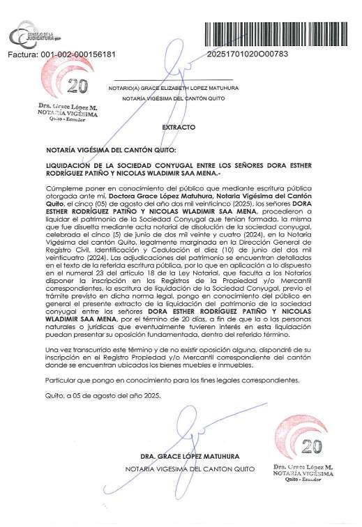 De conformidad con el Art. 292 de la Ley de Compañías se informa que el Balance General y el Estado de la Cuenta de Pérdidas y Ganancias y sus anexos, están a disposición de los accionistas, en la oficina de la Compañía, ubicada en la Av. Simón Bolívar 288 y General Rumiñahui Quito, D.M. 08 de Agosto de 2025.
