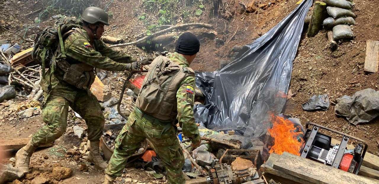 A partir de finales de julio y lo que va de agosto de 2025, las fuerzas del orden reforzaron los patrullajes para destruir campamentos de minería ilegal en la zona fronteriza de Carchi.