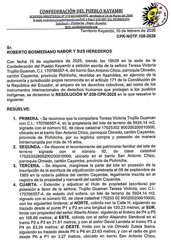 Quito, a los 12 días del mes de febrero del año 2026