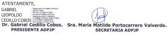 Los documentos a conocerse en esta Junta General, se hallan a disposición de los señores Socios en la oficina de Contabilidad de la Compañía, y se han enviado a las direcciones electrónicas establecidas en los Libros Sociales respectivos.