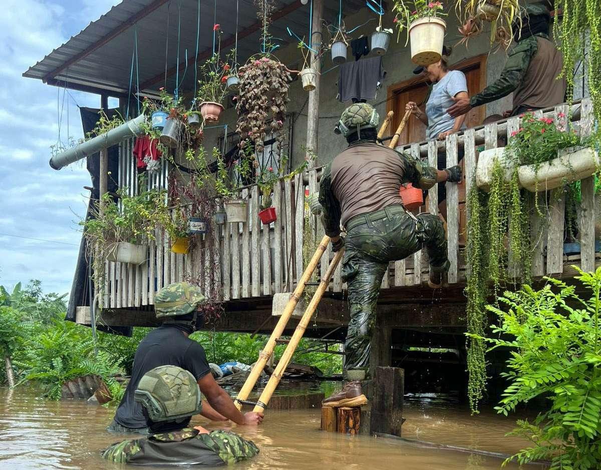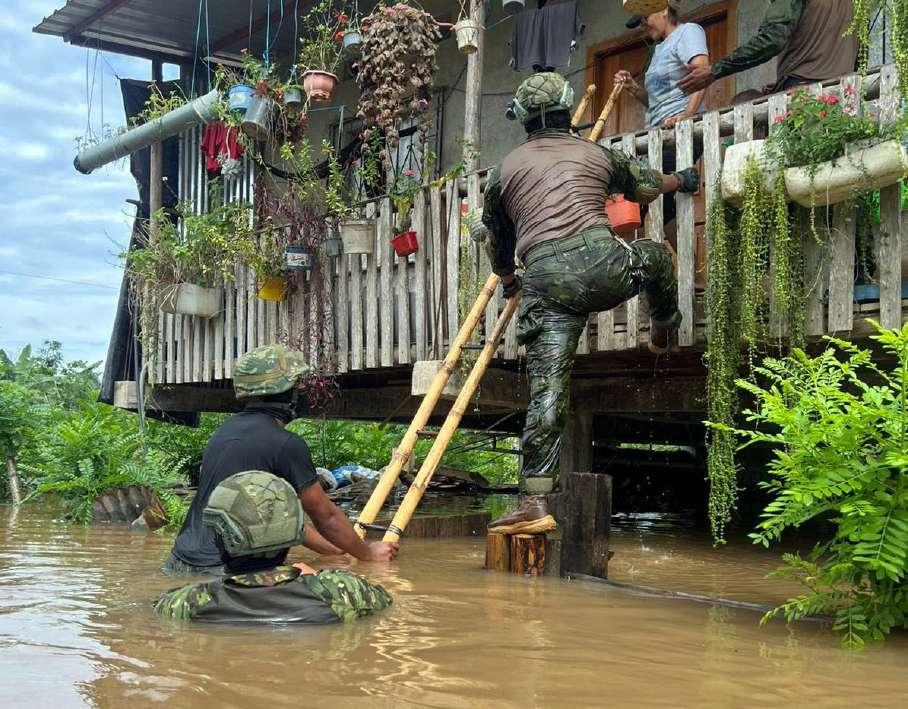 El incremento del nivel de los ríos por la temporada invernal dejó a varios habitantes atrapados en sus viviendas, por lo que las Fuerzas Armadas ejecutaron labores de evacuación. 4
