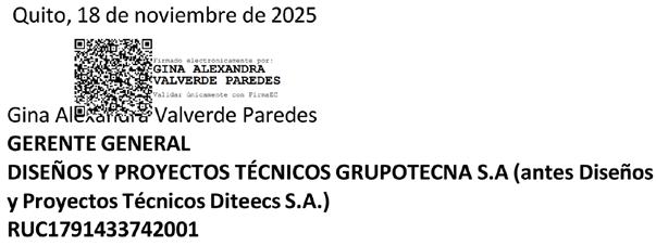 De igual forma, conforme con lo dispuesto en el artículo 3, literal d) del REGLAMENTO SOBRE JUNTAS GENERALES Y ASAMBLEA GENERAL DE SOCIOS Y ACCIONISTAS DE LAS COMPAÑÍAS DE RESPONSABILIDAD LIMITADA, ANONIMAS, EN COMANDITA POR ACCIONES, DE ECONOMIA MIXTA Y SOCIEDADES P0R ACCIONES SIMPLIFICADAS, los accionistas que vayan a asistir por medios telemáticos a la misma día y hora de la junta 9h30, pueden manifestarlo al Gerente General mediante correo electrónico, hasta el día anterior al de la realización de la Junta avisaran que van asistir por ese medio, en cuyo caso deberían consignar sus correos electrónicos a los siguientes correos gvalverde@grupo-tecna-diteecs.com o sandraesalvador2012@gmail.com y conectarse a la siguiente aplicación zoom: