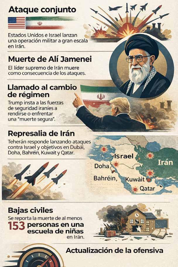 El ayatolá Alí Jamenei, líder supremo en Irán desde 1989, murió tras un ataque de Estados Unidos e Israel, el sábado 28 de febrero. Aunque en la guerra de 12 días en junio de 2025 Israel destruyó gran parte de su arsenal militar, Irán respondió bombardeando Baréin, Kuwait, Omán, Qatar, Arabia Saudita y Emiratos Árabes Unidos. La incertidumbre que genera este conflicto tiene varias aristas. La primera sería un alza del precio del petróleo. La revista británica The Economist estima que el WTI podría superar los $100 por barril, lo que llevaría el crudo ecuatoriano a entre $85 y $90. Un shock petrolero podría aliviar temporalmente las finanzas públicas pero, si el conflicto escala, la inflación podría acelerarse.