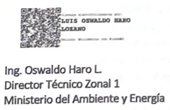 Cúmplase y Notifíquese. f) Ing. Oswaldo Haro L - Director Técnico Zonal 1, Ministerio del Ambiente y Energía. CERTIFICO. –
