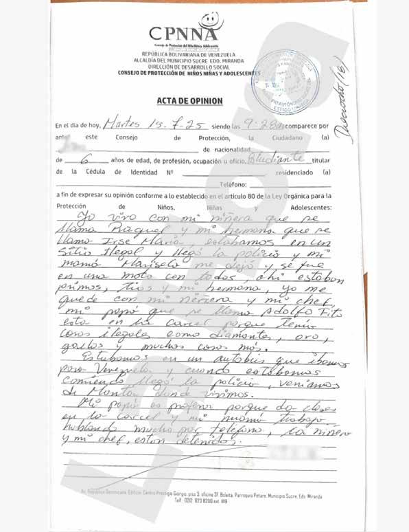 Documentos a los que accedió LA HORA detallan que el hijo de 6 años de alias Fito está en custodia del régimen venezolano. La madre y hermanos del menor lo habrían abandonado por huir, en una zona fronteriza.