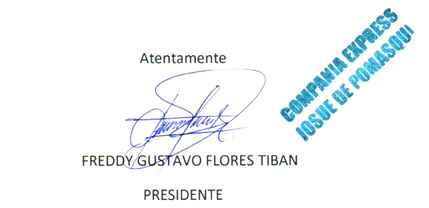 Se convoca de manera especial al Sr. HOLGUER ESTEVEZ, comisario de la COMPAÑÍA DE TRANSPORTES EXPRESSJOSUE DE POMASQUI S.A a fin de que asista de manera obligatoria a esta junta general