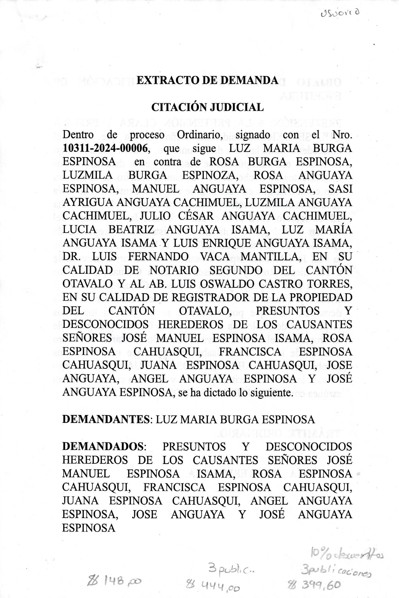 De conformidad con lo estipulado en los Estatutos de la Compañía, la Ley de Compañías y el Reglamento de Juntas Generales de Socios y Accionistas de Compañías, se convoca a los señores accionistas de la Compañía De Carga Pesada Yacol Yacolfrag S.A., a la Junta General Ordinaria de Accionistas que se llevará a cabo el día lunes 23 de marzo del 2026, a las 9:00 am, en la oficina de la Compañía ubicada en EL Barrio Ushimana, calle Río Ushimana No. EO6222, y Carlos Julio Arosemena en la ciudad de Quito