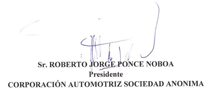 En el uso de la facultad estatutaria conferida mediante el Artículo Décimo Segundo del estatuto social de la compañía, que dice: “La Junta General de Accionistas, se reunirá ordinariamente, una vez al año y, extraordinariamente, cuando sea convocada por el Presidente de la Compañía (...)” (énfasis incorporado) se convoca a los accionistas de la compañía CORPORACIÓN AUTOMOTRIZ