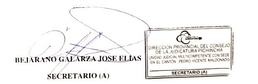 JUEZ: DR. FREDY CHULDE OBANDO DEL CANTON PEDRO VICENTE MALDONADO, PROVINCIA DE PICHINCHA, UNIDAD MULTICOMPETENTE