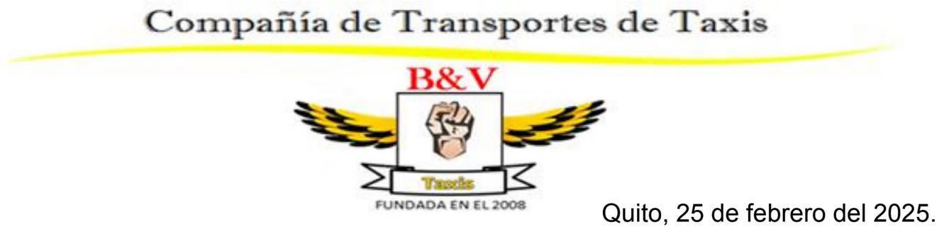 El señor Alex Vinicio Bustillos Vélez en calidad de GERENTE GENERAL de la COMPAÑIA DE TAXIS BUSTILLOSVELEZ ByV S.A. procede a convocar a una Junta General Ordinaria de que se realizara el día: Miércoles 4 de marzo del 2026.